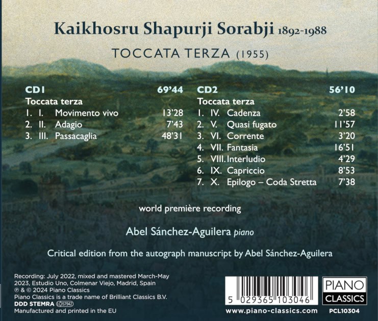 “Sánchez-Aguilera thrives on the conceptual and technical challenges of this music. As with his reading of the rather longer Toccata seconda (also on Piano Classics), a virtuosity that never takes itself for granted is continually geared towards the music’s essence. Rarefied though Sorabji’s music may be, it can be engrossing and communicative when interpreted with this degree of authority and insight.”